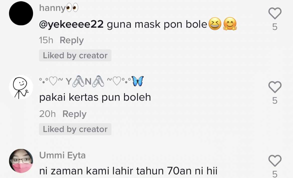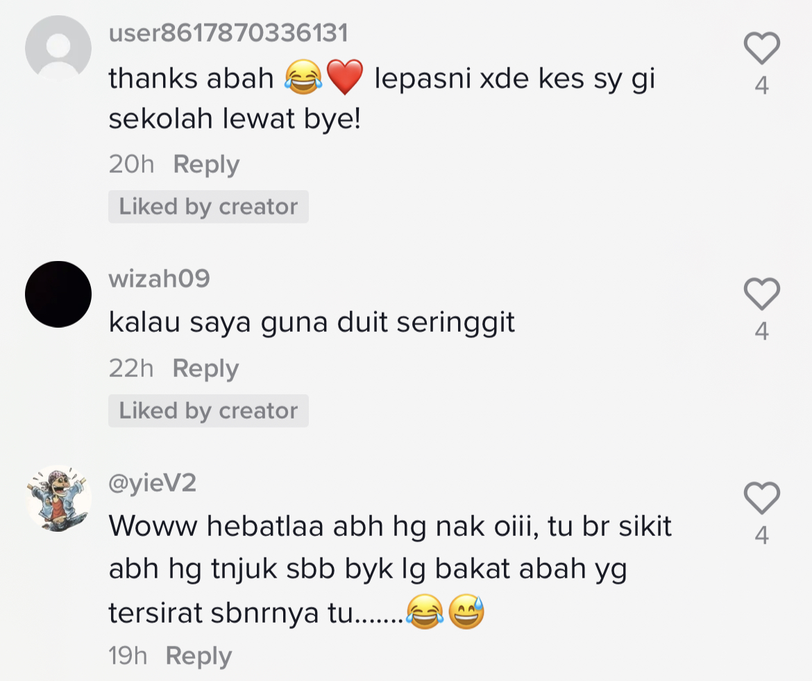 Berikut di bawah adalah antara komen menarik daripada netizen di TikTok: