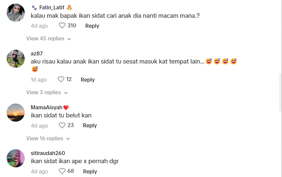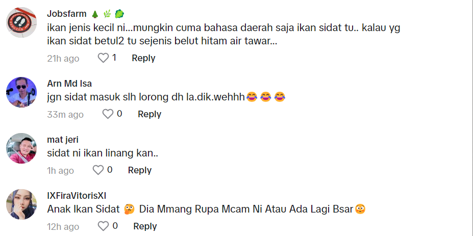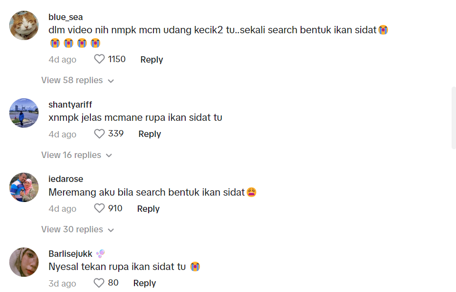 Terdapat juga netizen yang geli dengan rupa dan bentuk ikan sidat tersebut. Difahamkan, ketika itu adalah musim ikan Sidat kerana jumlah yang ditangkap tidak terkira.
