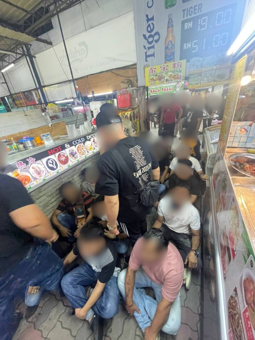 Menerusi kenyataan di Facebook, Ketua Pengarah Jabatan Imigresen (JIM), Datuk Zakaria Shaaban berkata, warga asing yang ditahan itu hasil pemeriksaan ke atas 102 individu termasuk warga tempatan yang berada di medan selera berkenaan.
