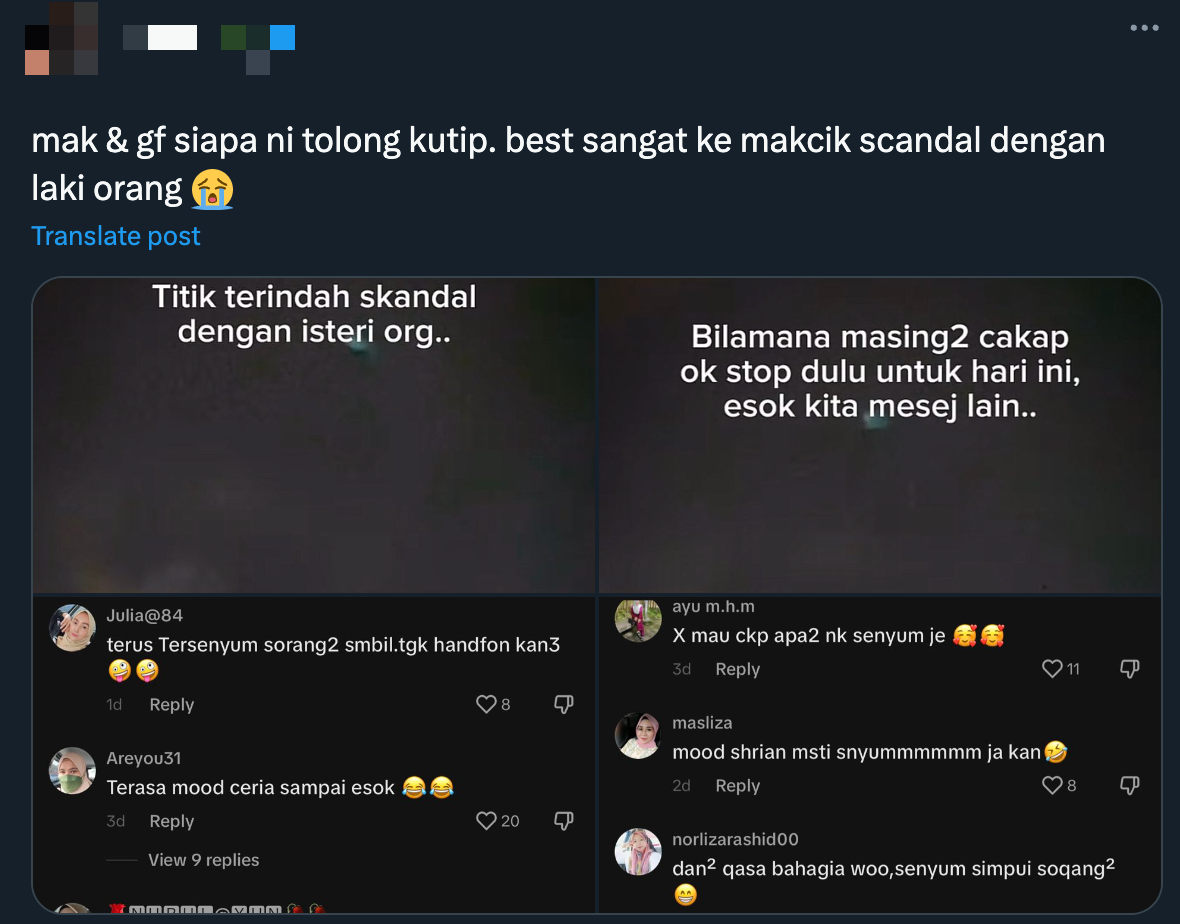 Individu Bangga Ada Skandal Dengan Isteri Orang, Komen Netizen ‘Menggatal’ Jadi Perhatian