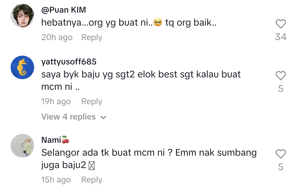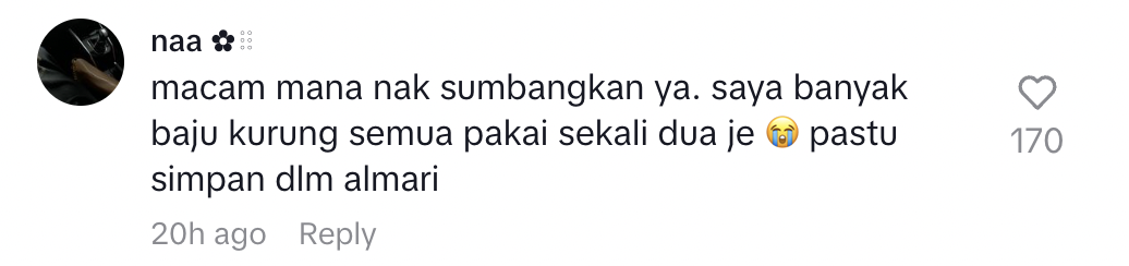 Antaranya seperti video yang tular di TikTok ini selepas seorang lelaki mengambil keputusan untuk mendermakan baju-baju Melayu terpakai miliknya.