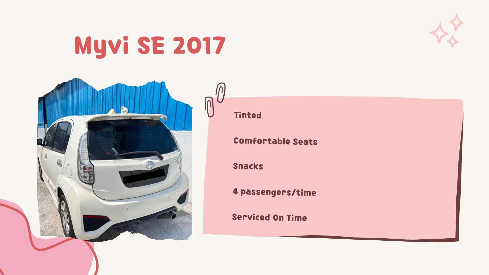 Menerusi akaun TikTok @gummybearjoyyyy, wanita yang dikenali sebagai Sarah itu memandu kereta jenis Perodua Myvi dan menawarkan perkhidmatan bermula daripada RM5.