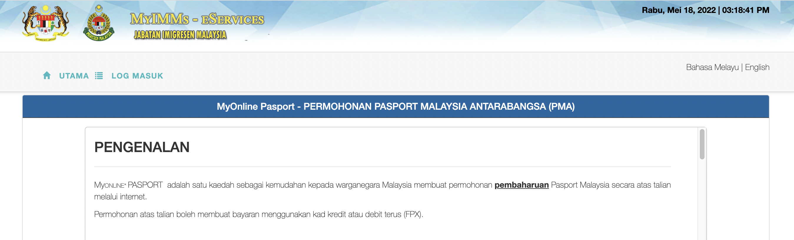 Perkara pertama anda perlu lakukan untuk perbaharui pasport secara online adalah dengan membuka terlebih dulu laman web Jabatan Imigresen Malaysia.