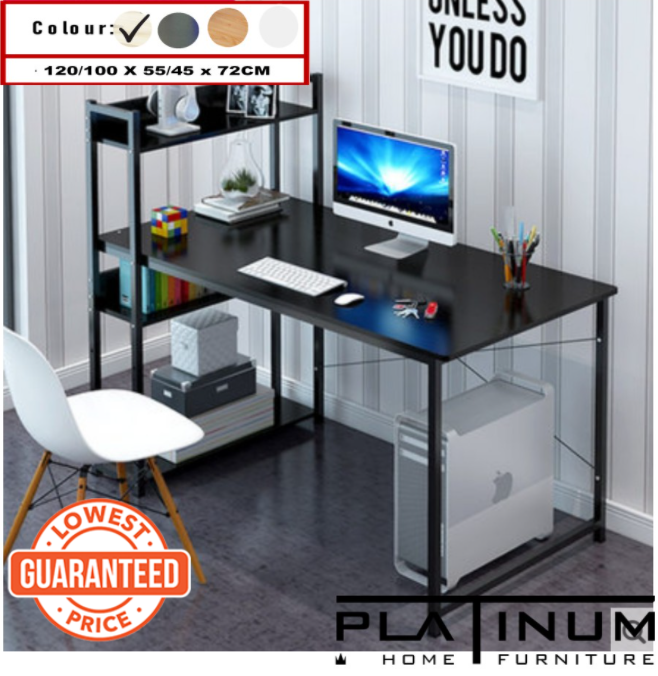 Kedai ini mempunyai design meja yang agak besar dan boleh meletakkan banyak barangan WFH anda. Di bahagian sisi meja, anda boleh lihat terdapat ruangan rak bertingkat yang membolehkan anda meletakkan pelbagai barang.