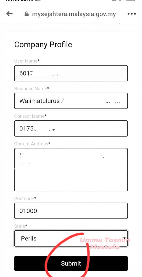 Anda kemudian dikehendaki mengisi nombor telefon, butiran majlis atau nama kedai beserta nombor telefon, alamat majlis atau kedai, poskod dan negeri. Selepas itu tekan submit.