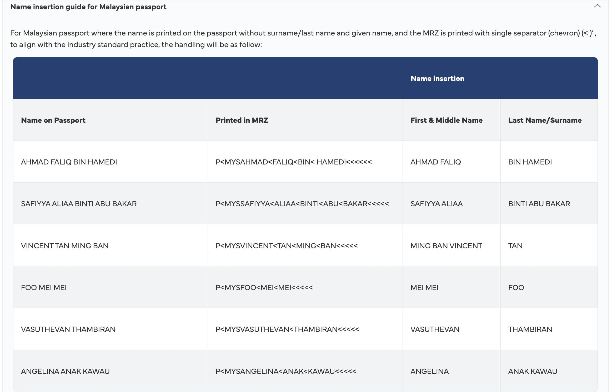 Menerusi laporan BFM News, pengemaskinian peraturan ini melibatkan peletakan nama yang dilakukan bertujuan untuk menangani isu semasa daftar masuk, terutamanya bagi para individu yang mempunyai nama unik dalam pasport Malaysia.