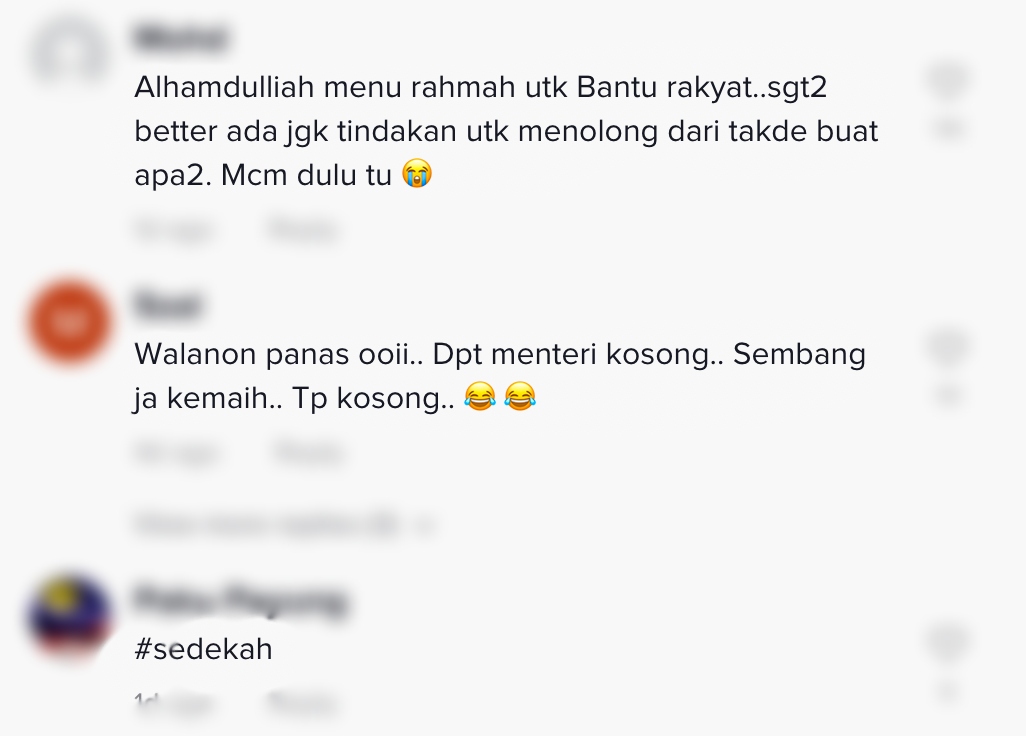 Berikut di bawah adalah antara komen daripada netizen di TikTok: