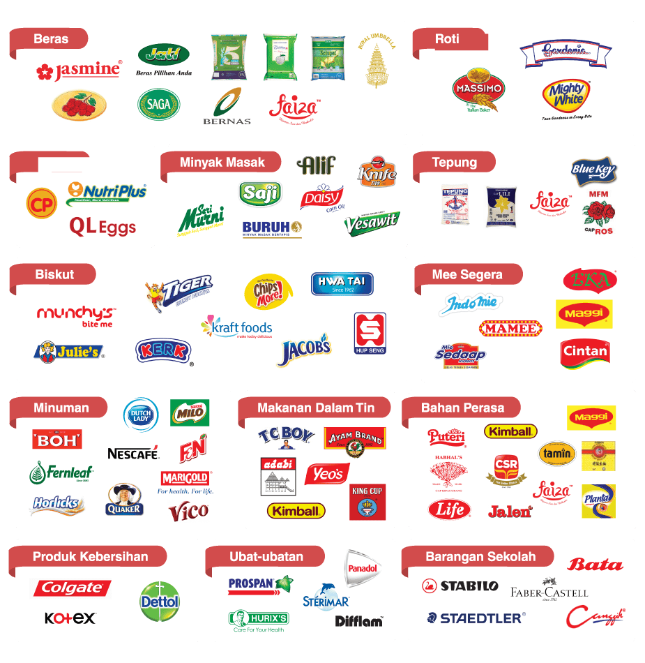 Lihat antara jenama barangan yang boleh dibeli di bawah: