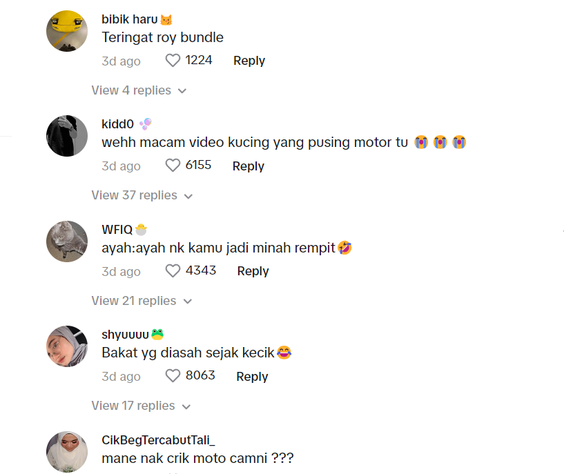 "The real pandai pacak motor dari kecil" – Netizen