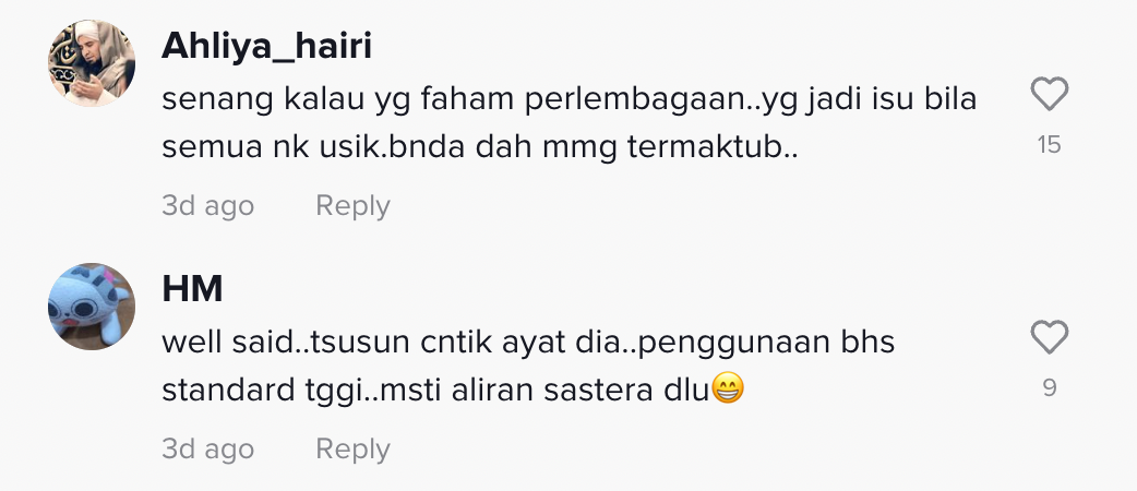 Berikut di bawah adalah antara komen daripada netizen di TikTok:
