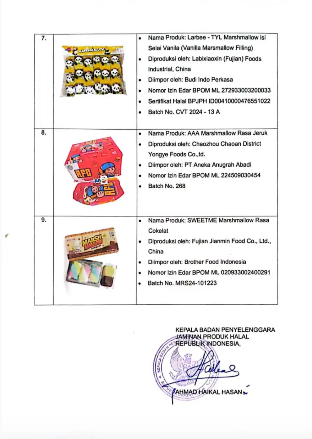 Senarai produk itu tersenarai di https://bpjph.halal.go.id/detail/siaran-pers.