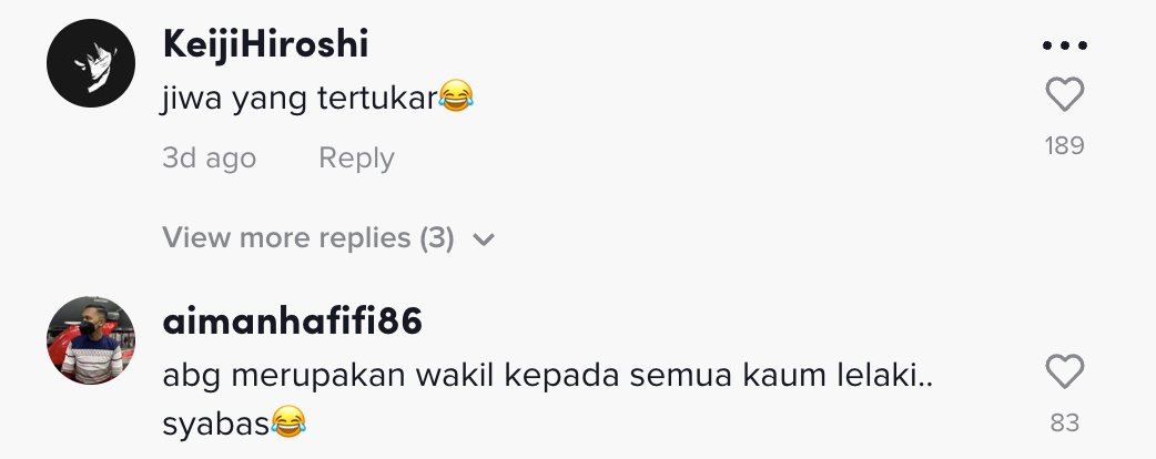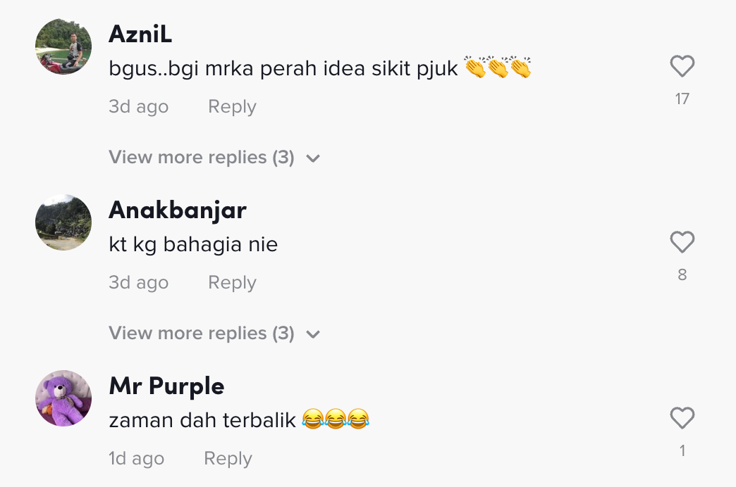 Berikut di bawah adalah antara komen daripada netizen di TikTok: