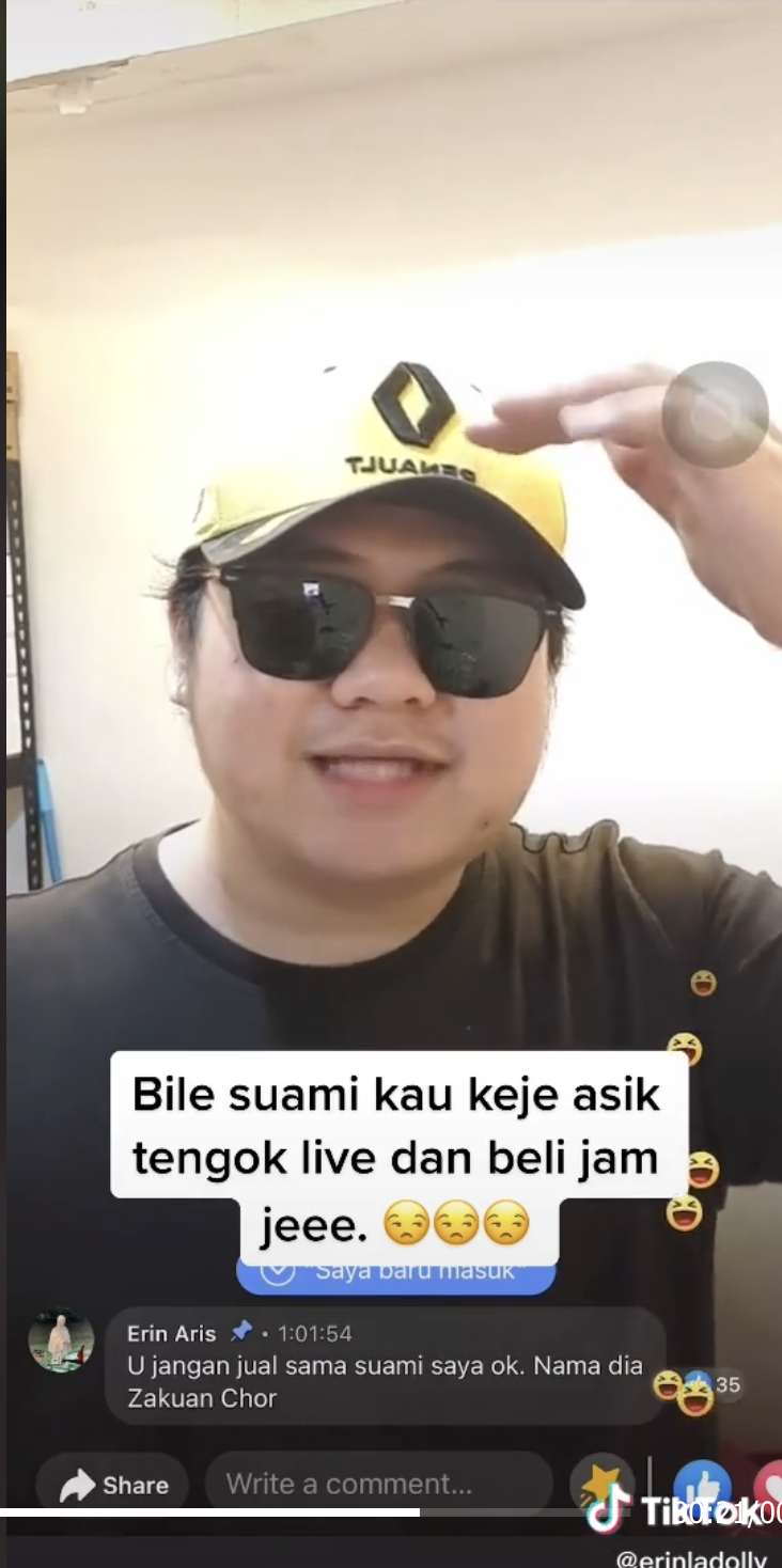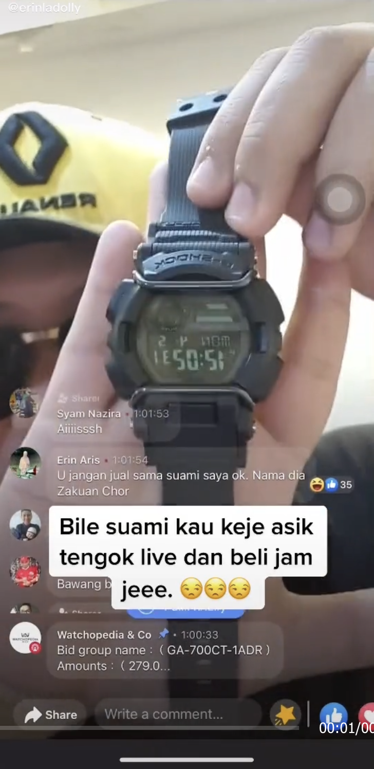 Difahamkan, suaminya selalu memasuki live tersebut untuk melihat koleksi jam tangan yang dijual oleh kedai berkenaan sehingga banyak jam tangan yang sudah dibelinya dari penjual tersebut.