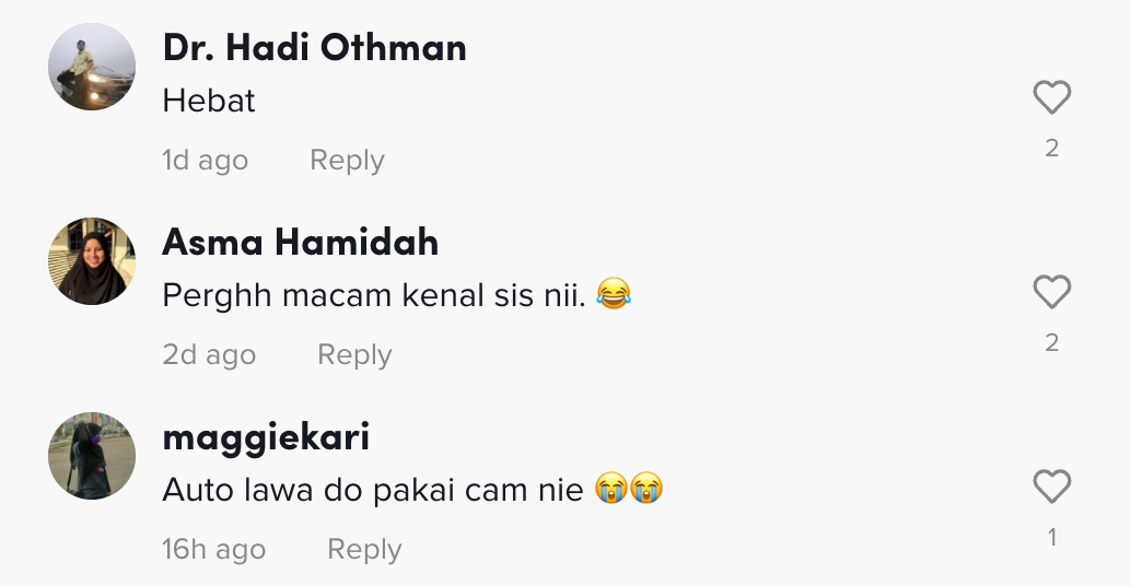 Berikut di bawah adalah antara komen menarik daripada netizen di Tik Tok: