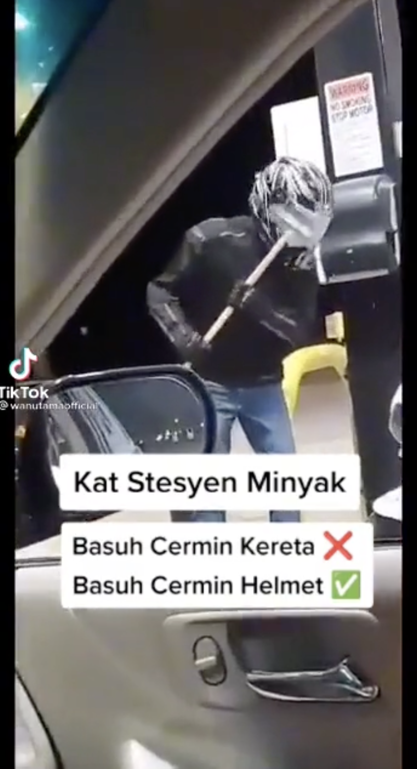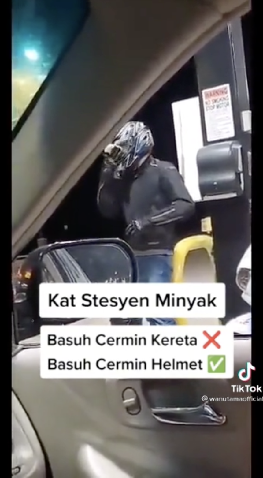 “Janji Cerah” – Aksi Lelaki Basuh Helmet Dekat Stesen Pam Minyak Ini Jadi Perhatian