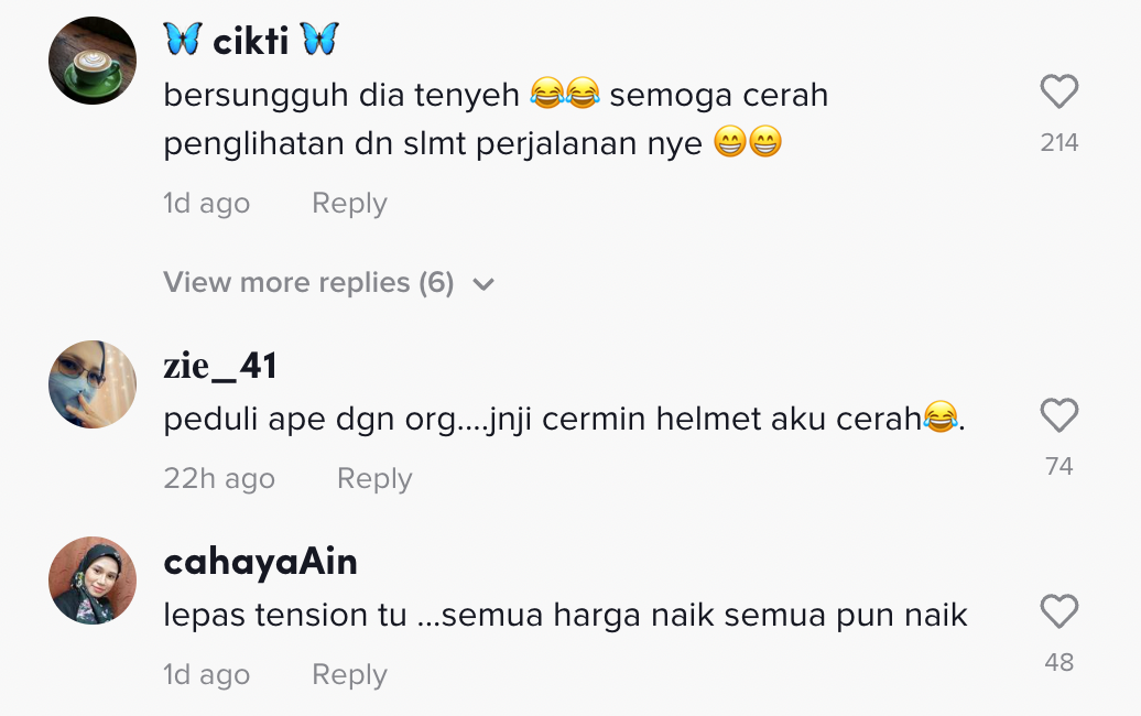 "Peduli apa dengan orang. Janji cermin helmet aku cerah" – Netizen