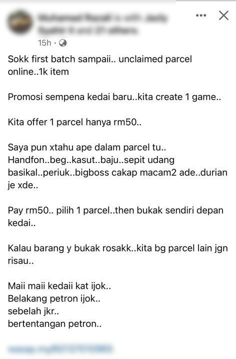 “Jelas Haram” – Jual Parcel Yang Tidak Di ‘Claim’, Posting Ini Terima Reaksi Ramai