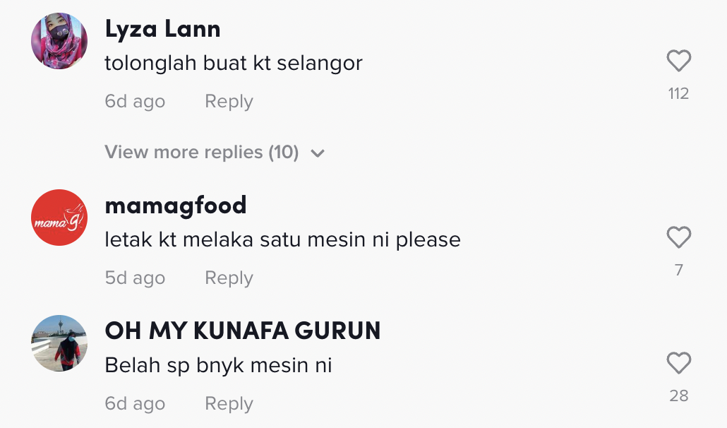 Sementara itu, tinjauan di ruangan komen mendapati rata-rata netizen turut memberikan pelbagai reaksi mereka dan mahukan mesin itu di kawasan mereka juga.