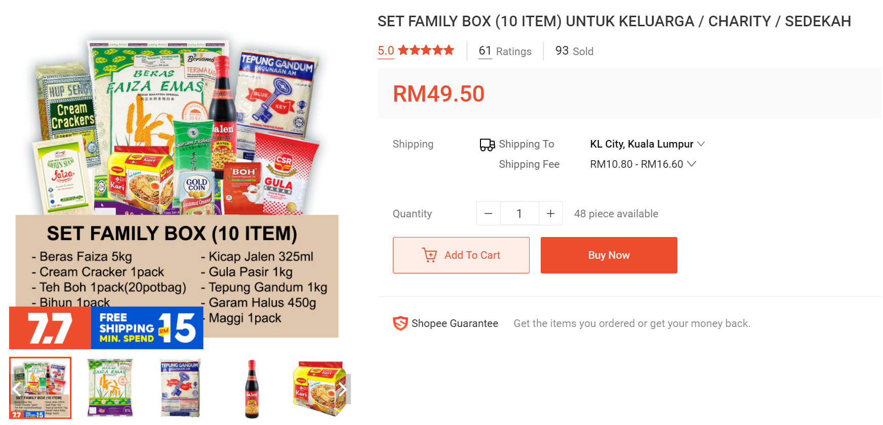 Seller dari Melaka ini menyediakan beberapa set pakej barangan dapur. Pergi sahaja di kedai mereka dan cari 'Family Box'.