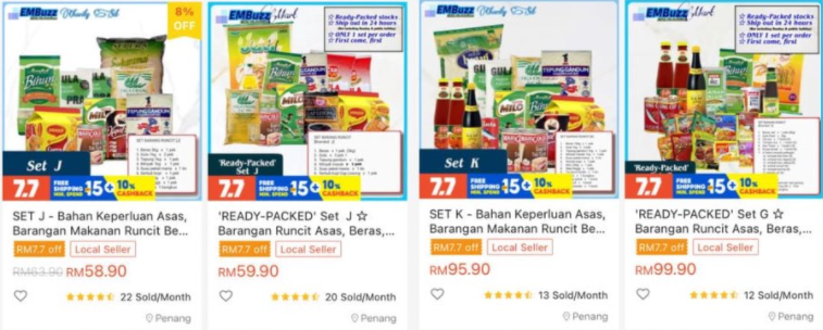 Ini adalah antara 8 kedai Shopee yang menjual pakej barangan dapur: