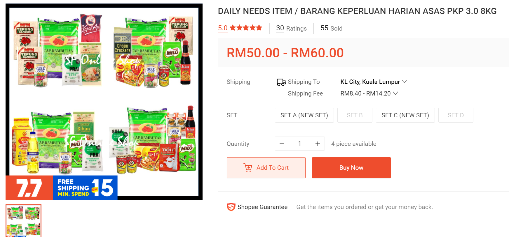 H&S Groceries menyediakan barangan keperluan asas secara pakej di Shopee. Kalau anda berada di sekitar Klang, boleh pilih seller ini.