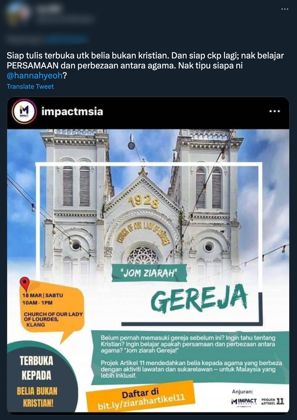 Baru-baru ini, tular di Twitter apabila seorang individu berkongsi tentang poster jom ziarah gereja yang telah menarik perhatian ramai.