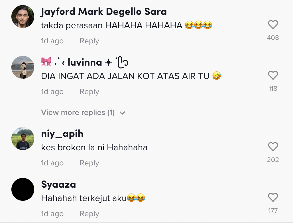 Sementara itu, tinjauan di ruangan komen mendapati rata-rata netizen turut terhibur melihat aksi lelaki itu.