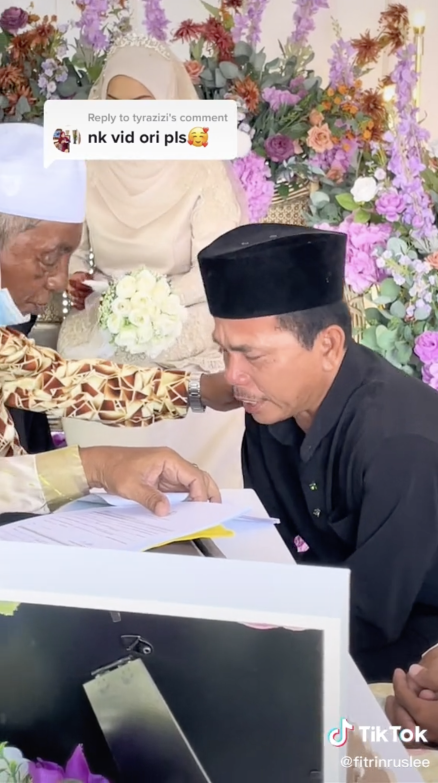Si ayah dilihat menangis tidak henti-henti dan mengesat air matanya. Situasi itu membuatkan jurunikah terpaksa menenangkannya.