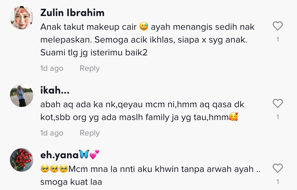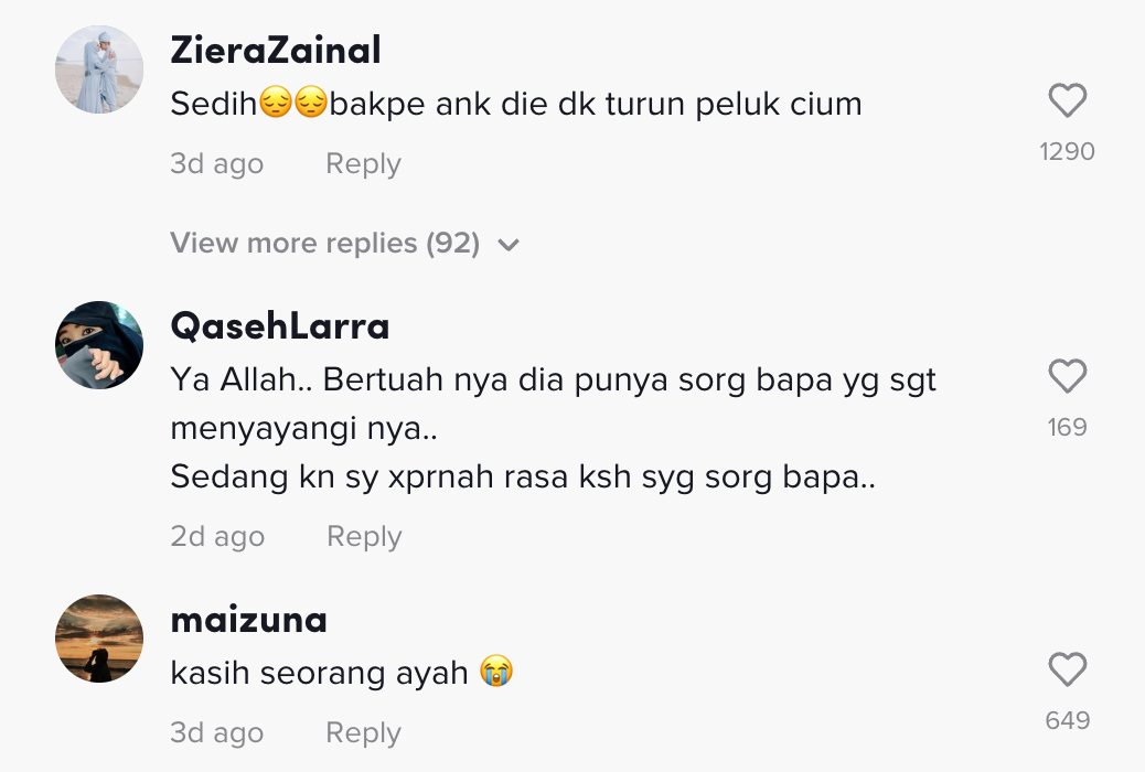Dalam pada itu, tinjauan di ruangan komen mendapati rata-rata netizen turut sebak melihatnya.