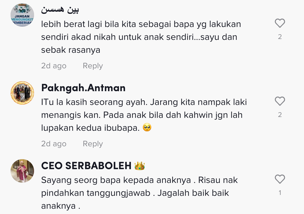 "Kasih sayang seorang ayah. Harap lelaki tu dapat jaga anak pak cik ni betul-betul" – Netizen