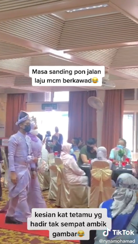 Tetapi, apa yang lebih menarik perhatian adalah cara pasangan pengantin ini berjalan yang dilihat sangat laju berbeza daripada pasangan pengantin lain.