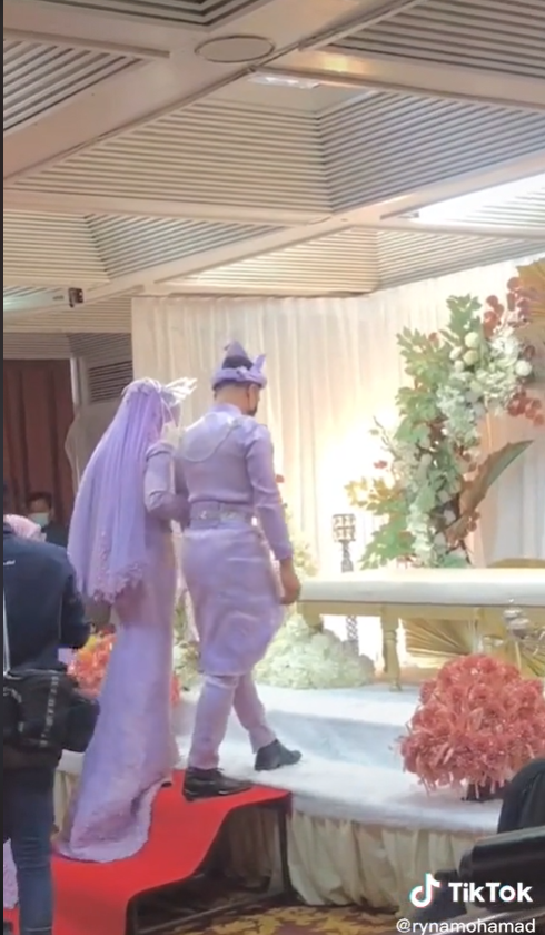 Menerusi video tersebut, kelihatan pasangan pengantin itu sedang berarak menuju ke pelamin mereka.