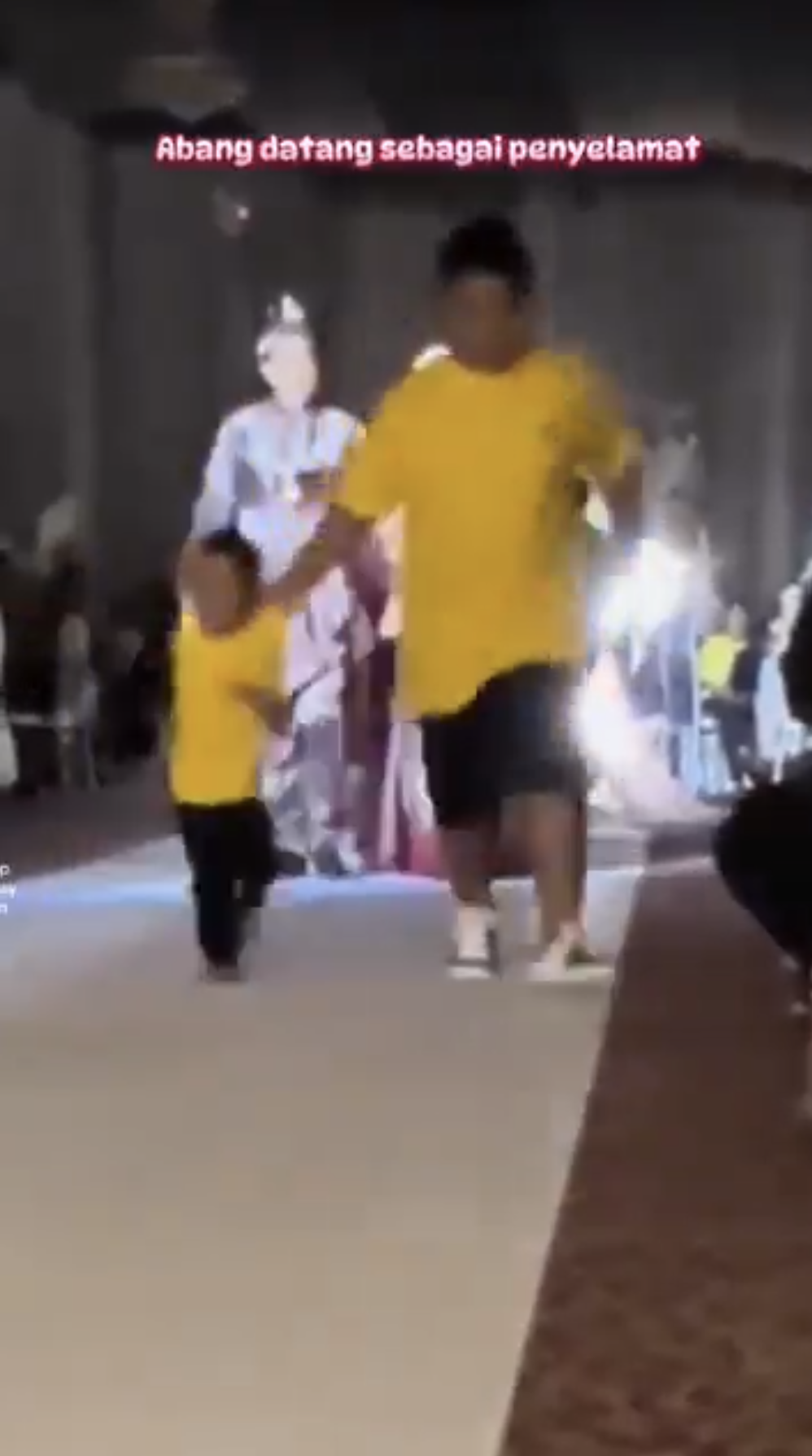 Lalu depan pengantin berarak, nasib baik abang datang tarik