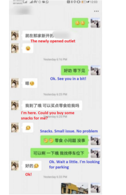 Mereka kemudian berjumpa di salah sebuah pasar raya kerana wanita tersebut ingin membeli sedikit beberapa snek makanan.