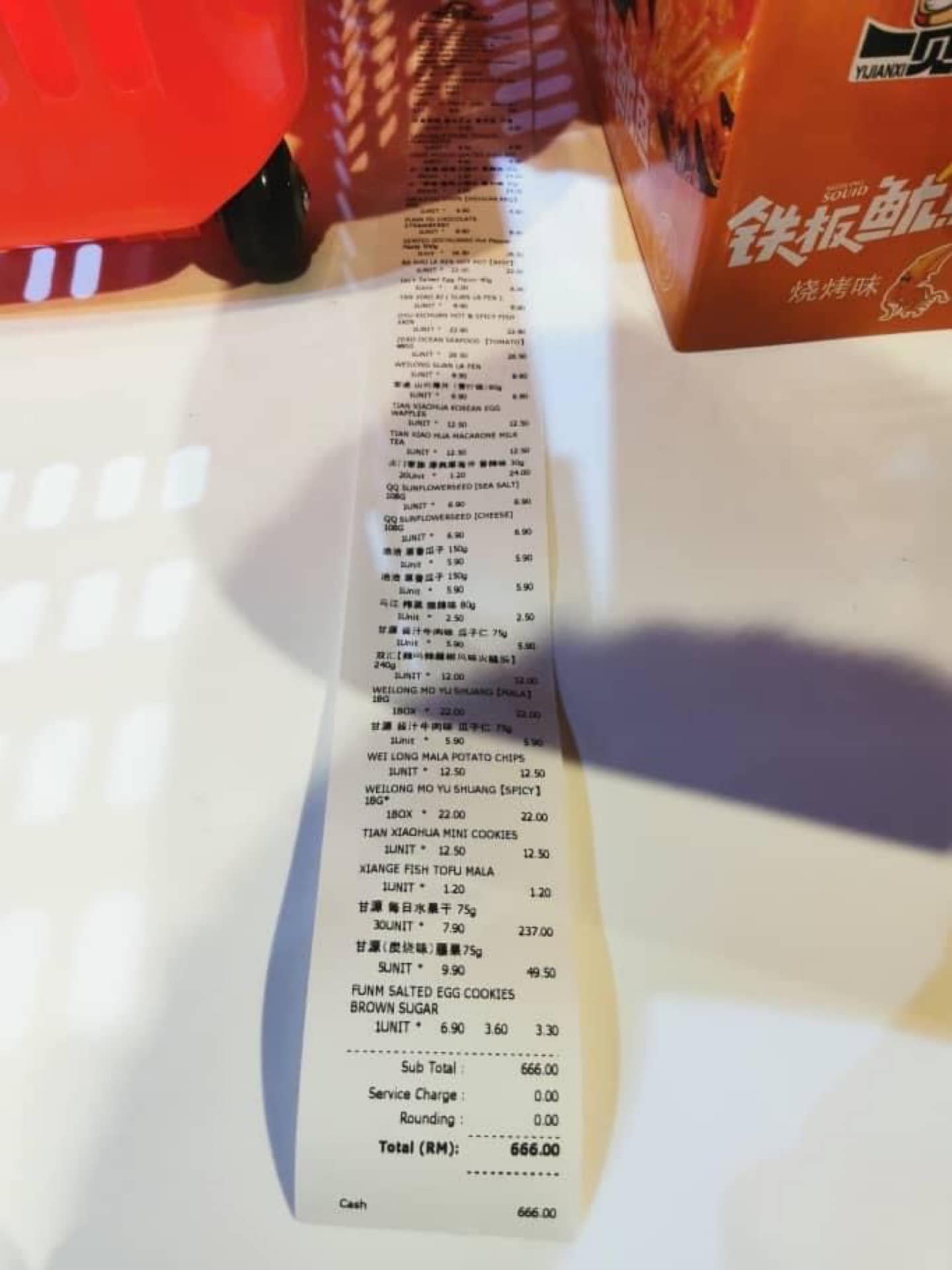Semasa membuat pembayaran, lelaki tersebut terkejut kerana terpaksa membayar RM666 untuk kesemuanya.