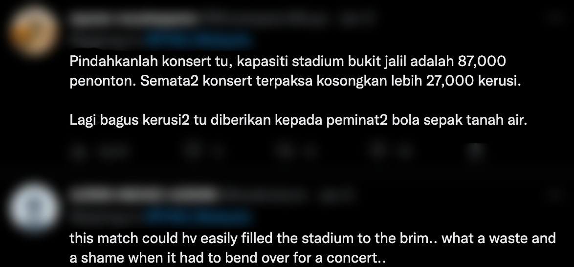 "Semata-mata konsert terpaksa kosongkan lebih 27,000 kerusi" – Netizen