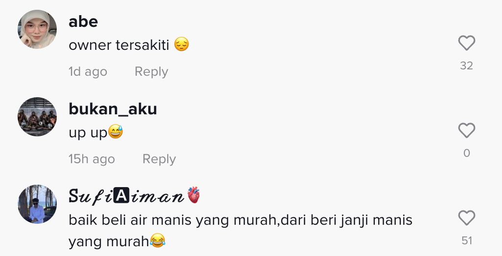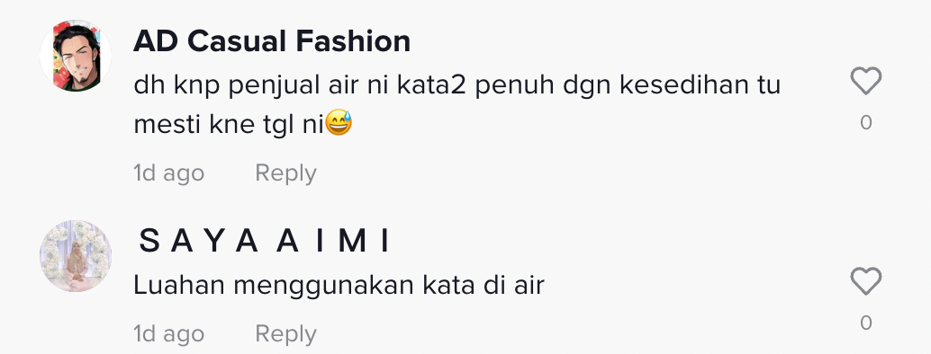Dalam pada itu, tinjauan di ruangan komen mendapati rata-rata netizen turut memberikan pelbagai reaksi dan mengusik peniaga air balang berkenaan.