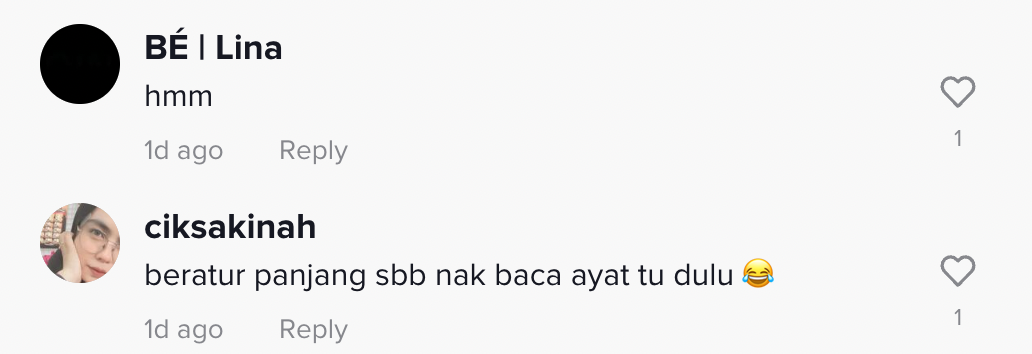 Berikut di bawah adalah antara komen daripada netizen di TikTok:
