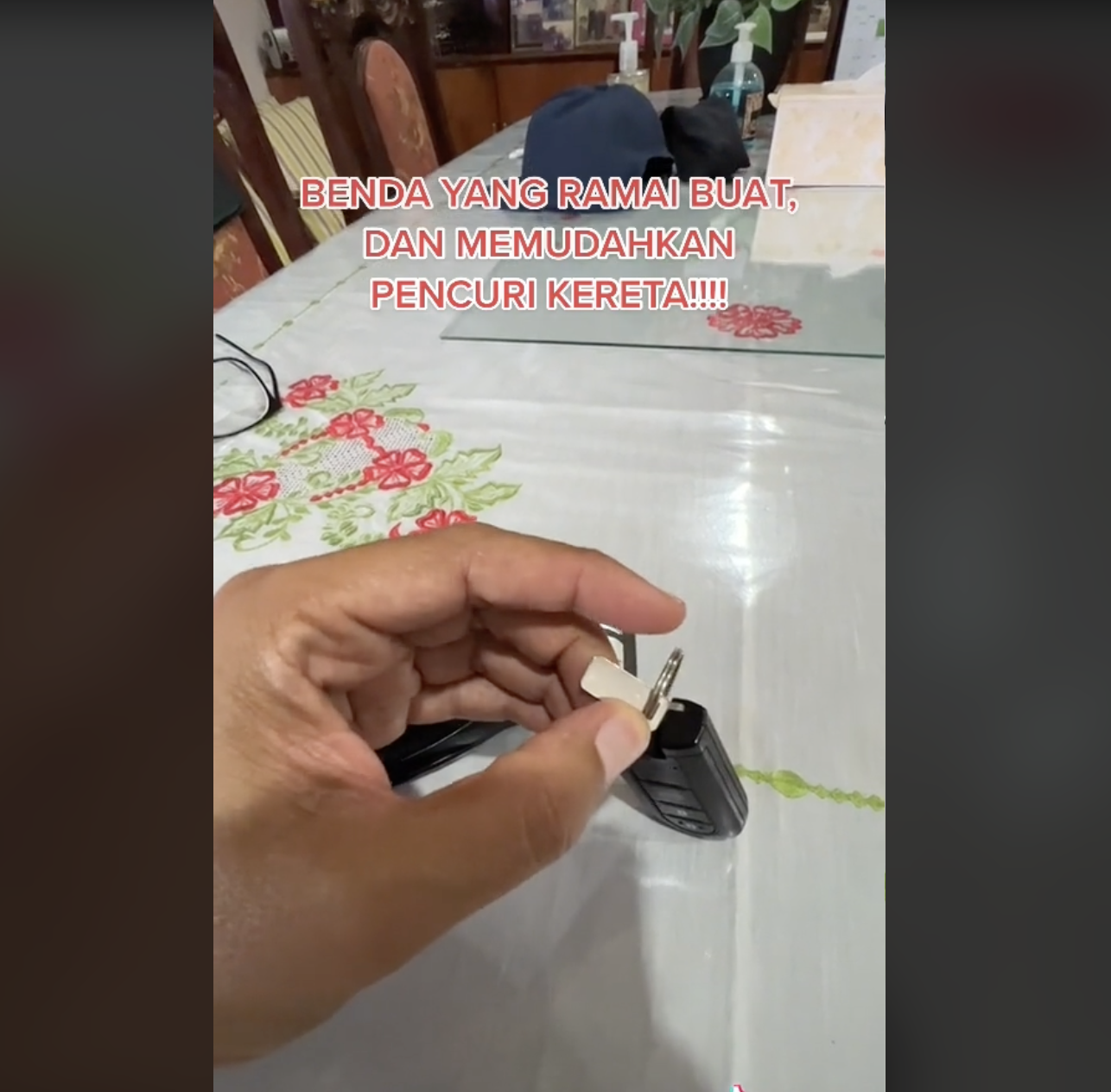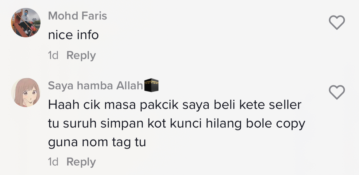 Di dalam video tersebut, lelaki itu menyatakan apabila membeli kereta kita akan mendapat dua set kunci yang hadir bersama sekeping tag besi.
