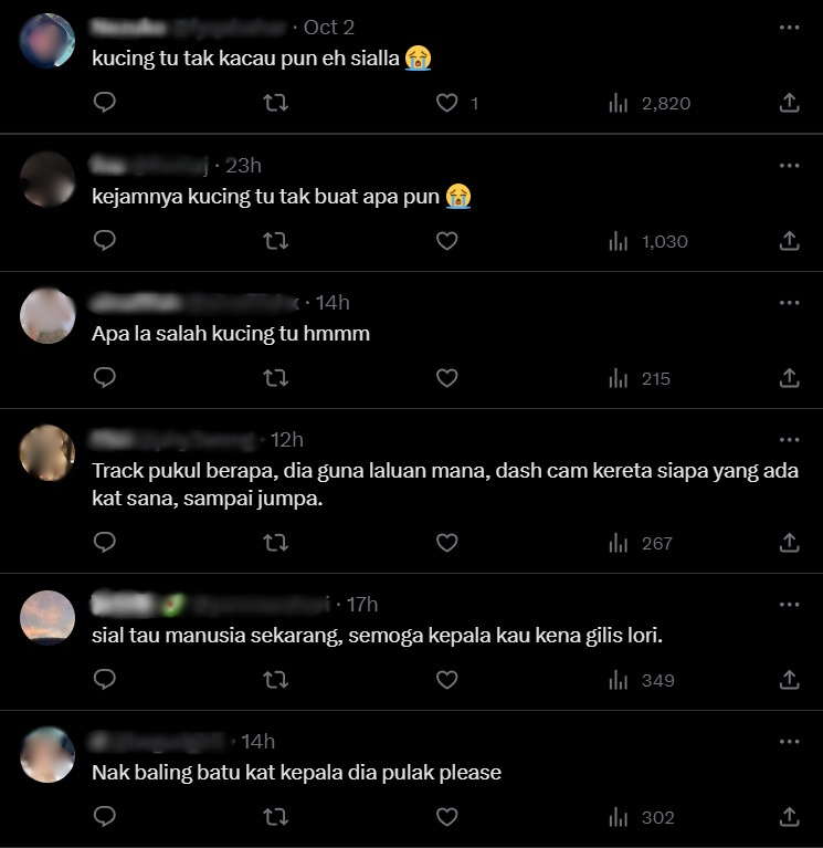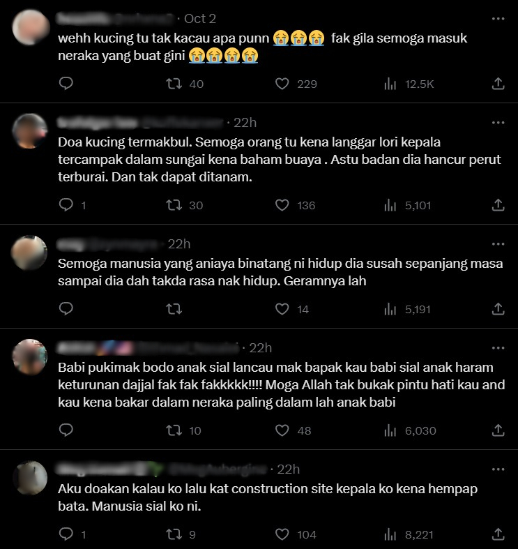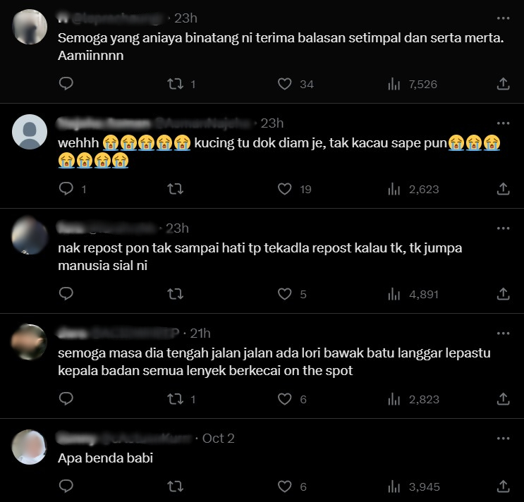 "Semoga manusia yang aniaya binatang ni hidup dia susah sepanjang masa sampai dia dah takda rasa nak hidup. Geramnya lah" – Netizen