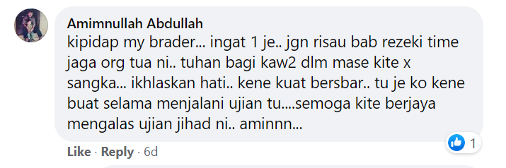 Sementara itu, tinjauan di ruangan komen juga mendapati rata-rata warganet berasa kagum melihat pengorbanan yang diberikan dan mendoakannya