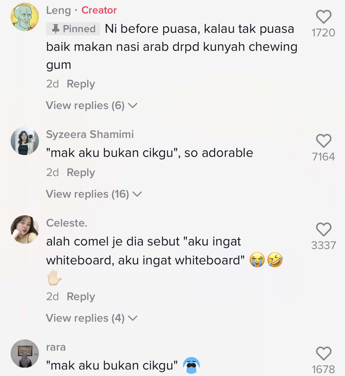 Berikut di bawah adalah antara komen menarik daripada netizen di TikTok: