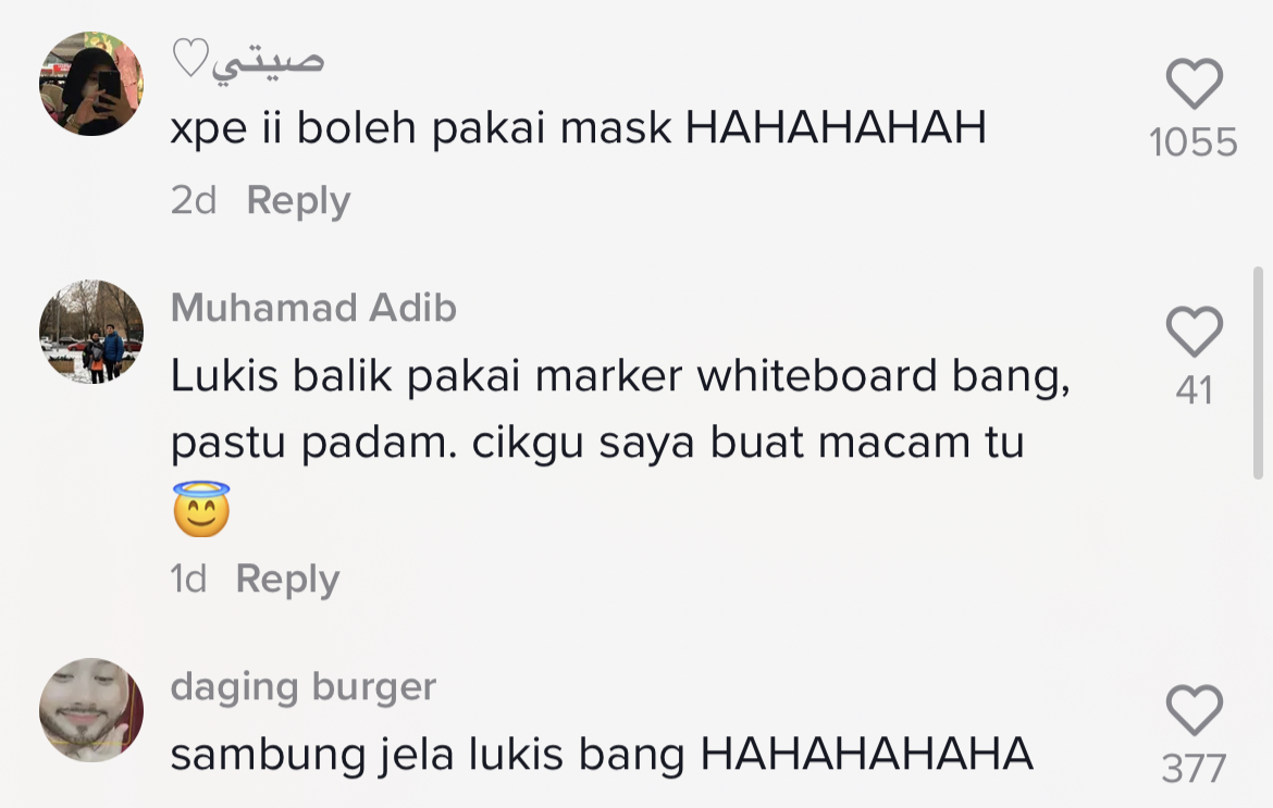 "Lukis balik pakai whiteboard marker bang, lepas itu padam. Cikgu saya pernah buat macam tu" – Netizen