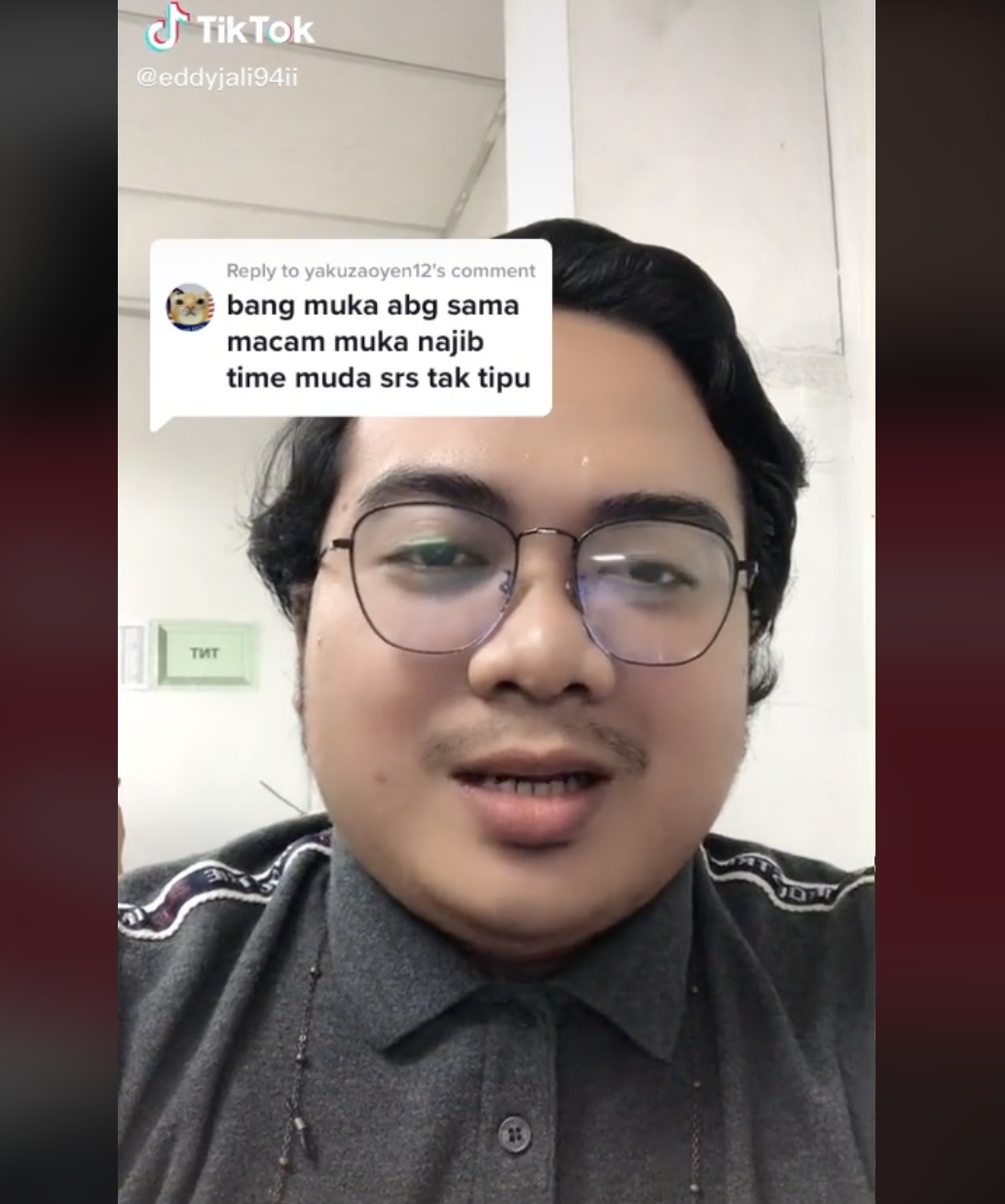 Menerusi video yang dikongsi oleh @eddyjali94ii, kelihatan dia sedang membaca sebuah komen yang menyatakan bahawa dia mempunyai muka yang sama dengan DS Najib sewaktu muda.