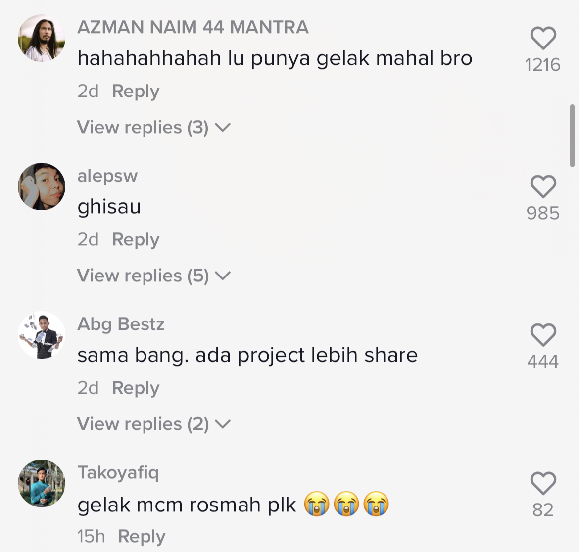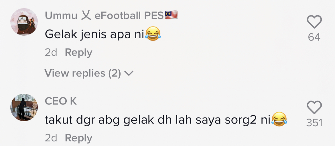 Susulan tularnya video berkenaan yang kini telah mendapat 814.8K views, 121.4K likes dan 6K comments di TikTok, rata-rata netizen turut terhibur dan ketawa bersama apabila melihat reaksi lelaki tersebut.