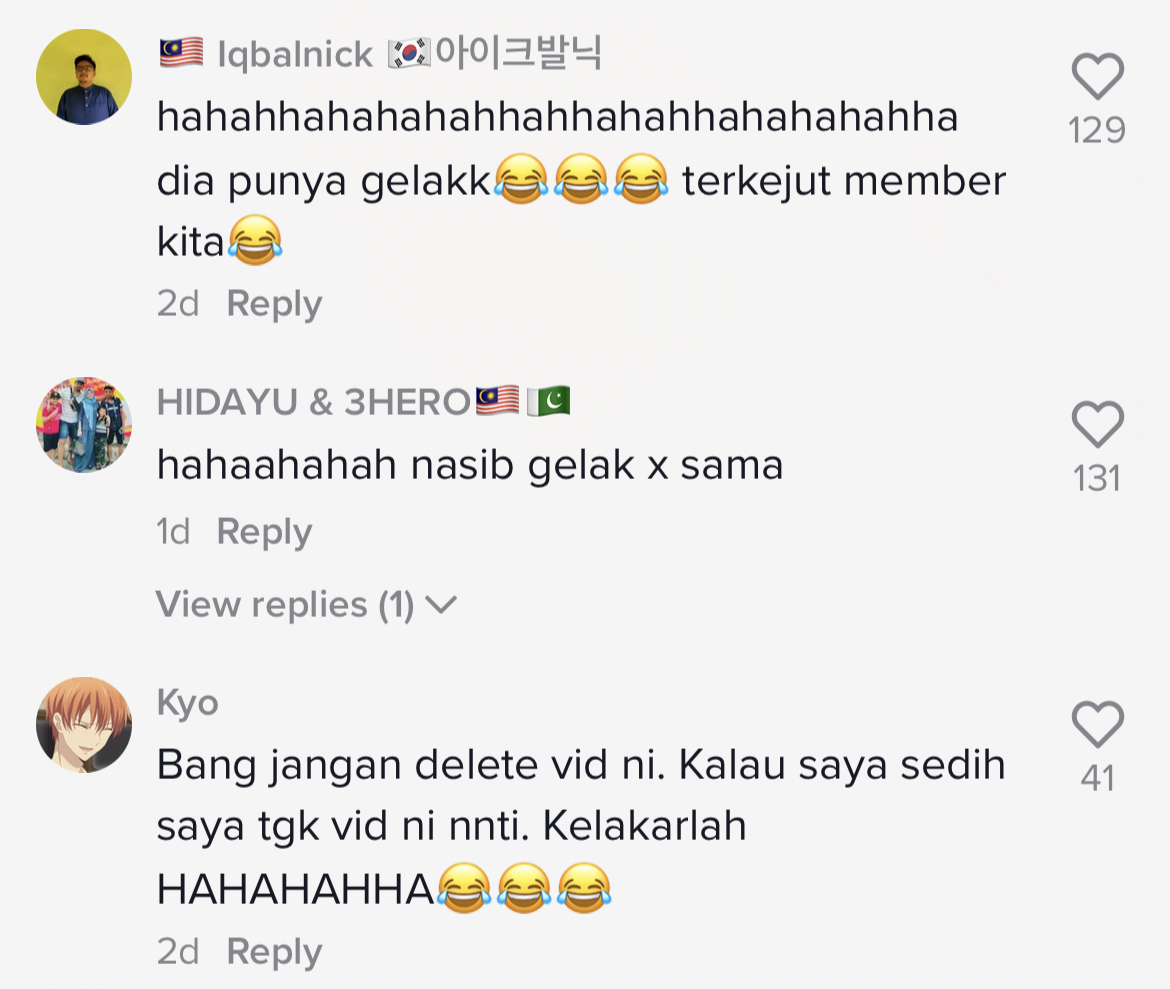 "Bang jangan delete video ni. Kalau saya sedih saya nak tengok video ni nanti. Kelakarlah HAHAHAHAHA" – Netizen