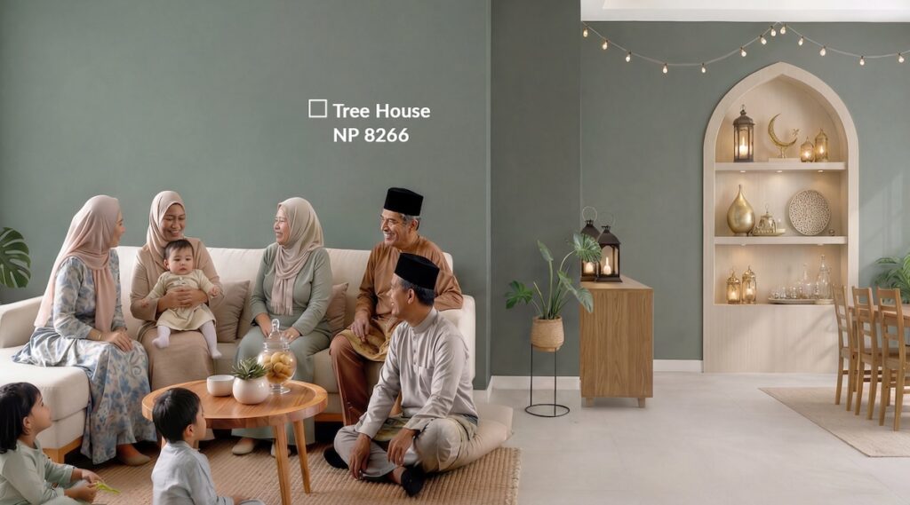 Menariknya untuk Raya 2026, ramai rakyat Malaysia mula sepakat memilih satu tona yang nampak simple, tapi ada 'jiwa' iaitu warna hijau Tree House (NP 8266).
