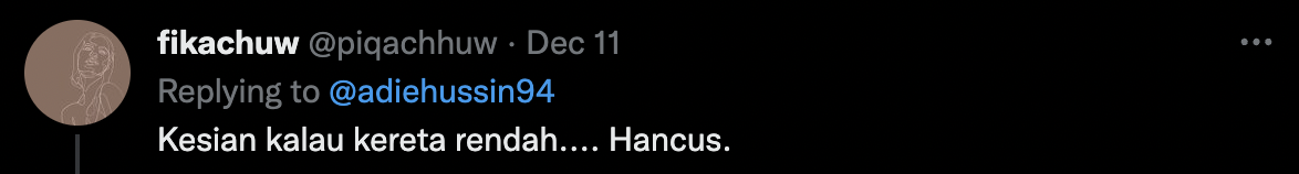"Kesian kalau kereta rendah. Hancur" – Netizen