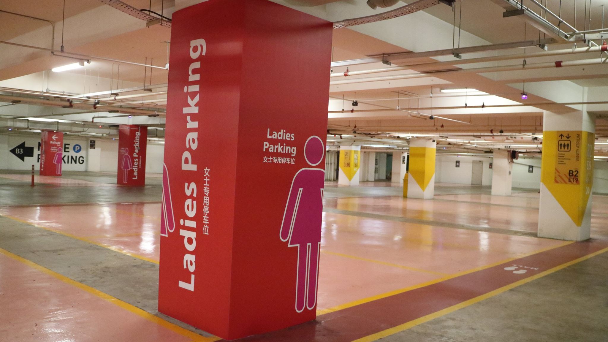 Zon tempat letak kereta wanita juga mempunyai pengawasan CCTV, butang bantuan untuk bantuan segera, dan pondok kakitangan keselamatan sepanjang masa.