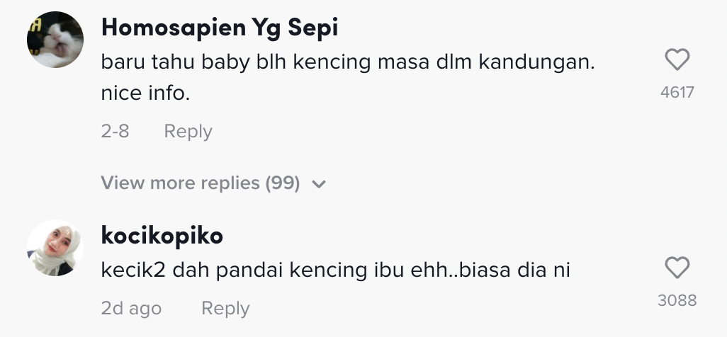 "Baru tahu baby boleh kencing masa dalam kandungan. Nice info" – Netizen
